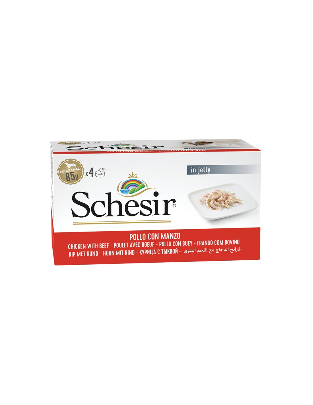 POLLO Y BUEY EN GELATINA PARA PERROS (4 UNIDADES) SCHESIR - 4 X 85 GR