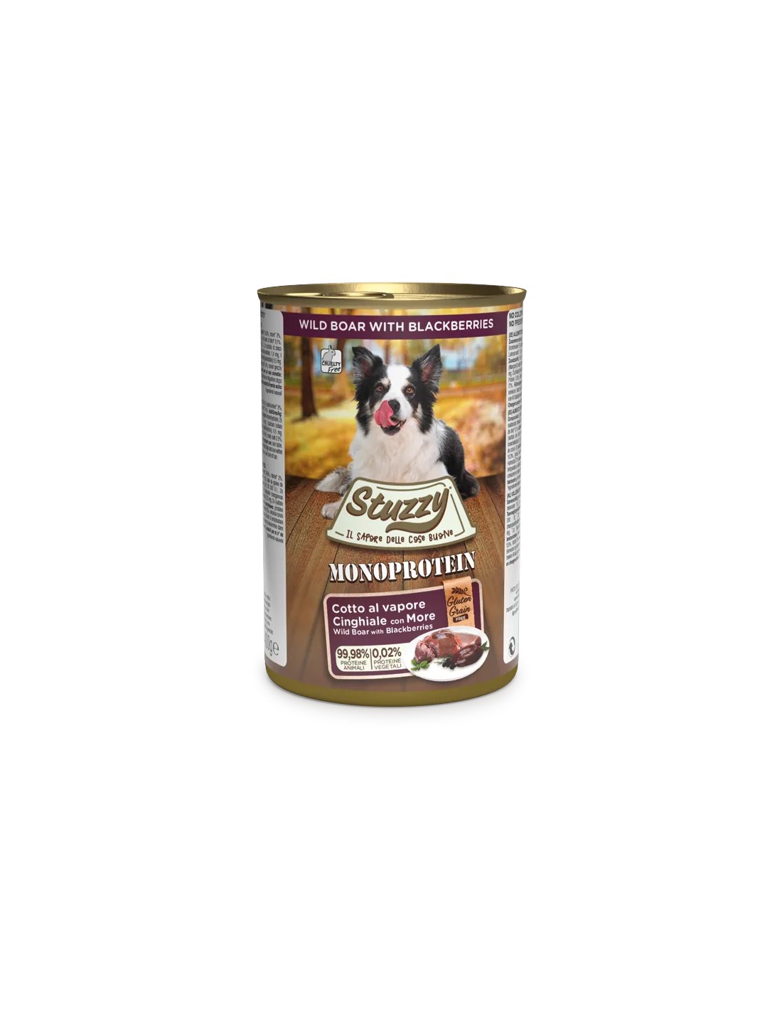 El Stuzzy Jabalí Monoproteico para Perros es una opción premium diseñada para proporcionar una nutrición de alta calidad a tu perro.