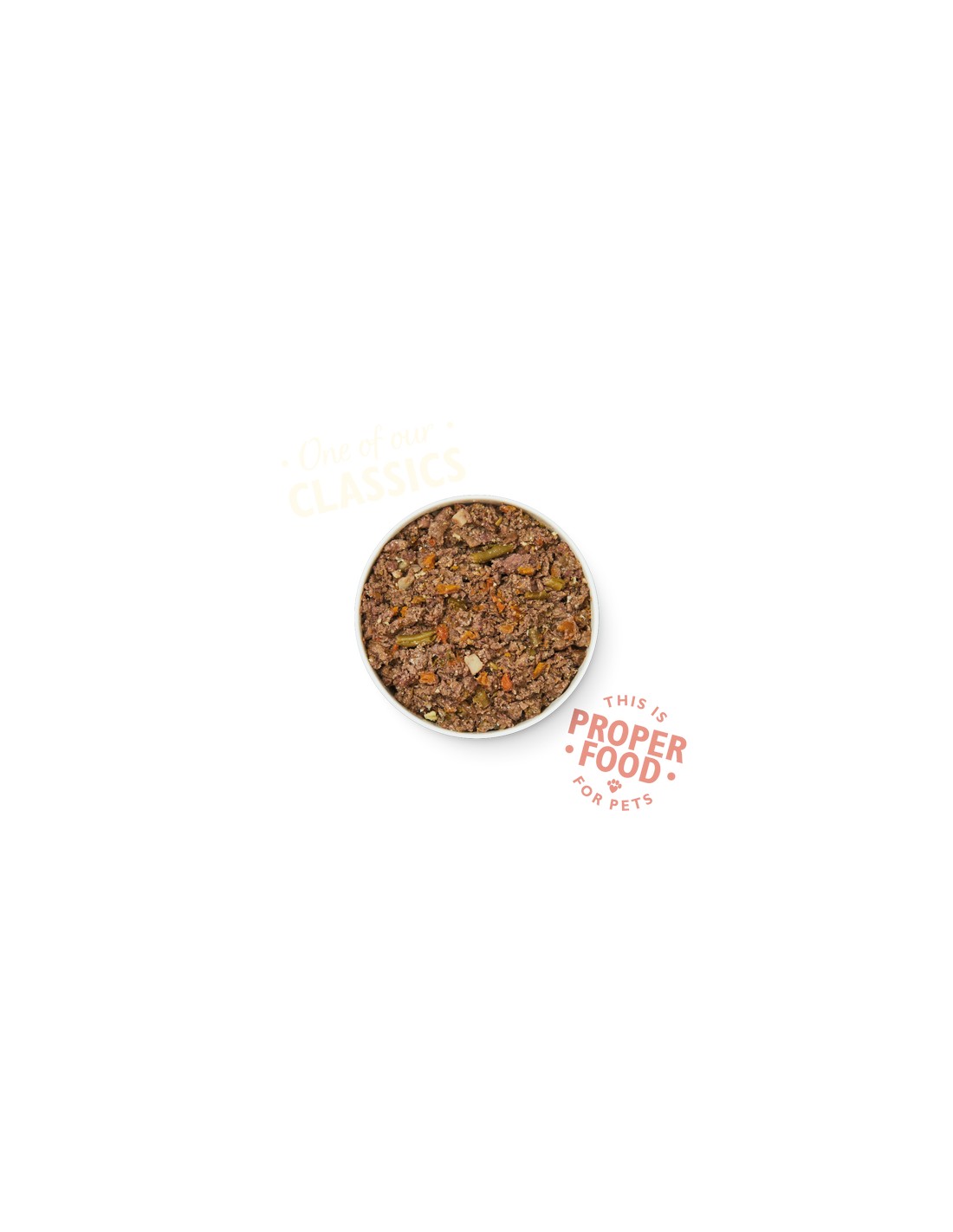 Hecho con carne de vacuno recién preparada, patatas, zanahorias y otros ingredientes naturales y frescos, este Cottage Pie ofrece una combinación irresistible que a tu perro le encantará.