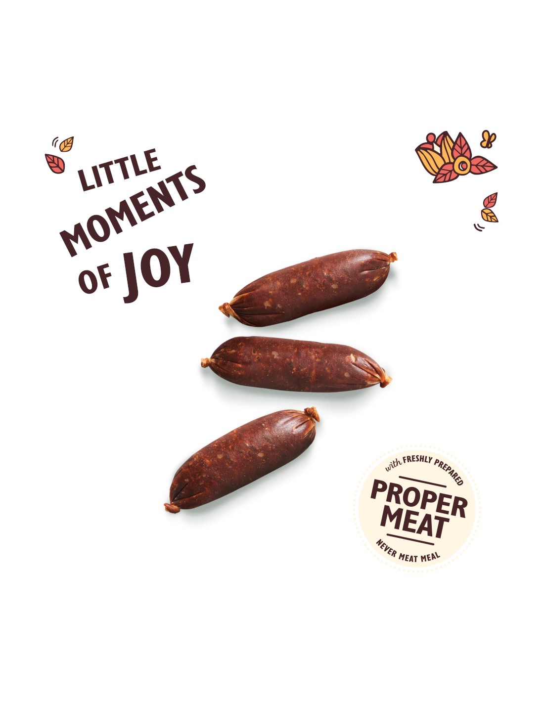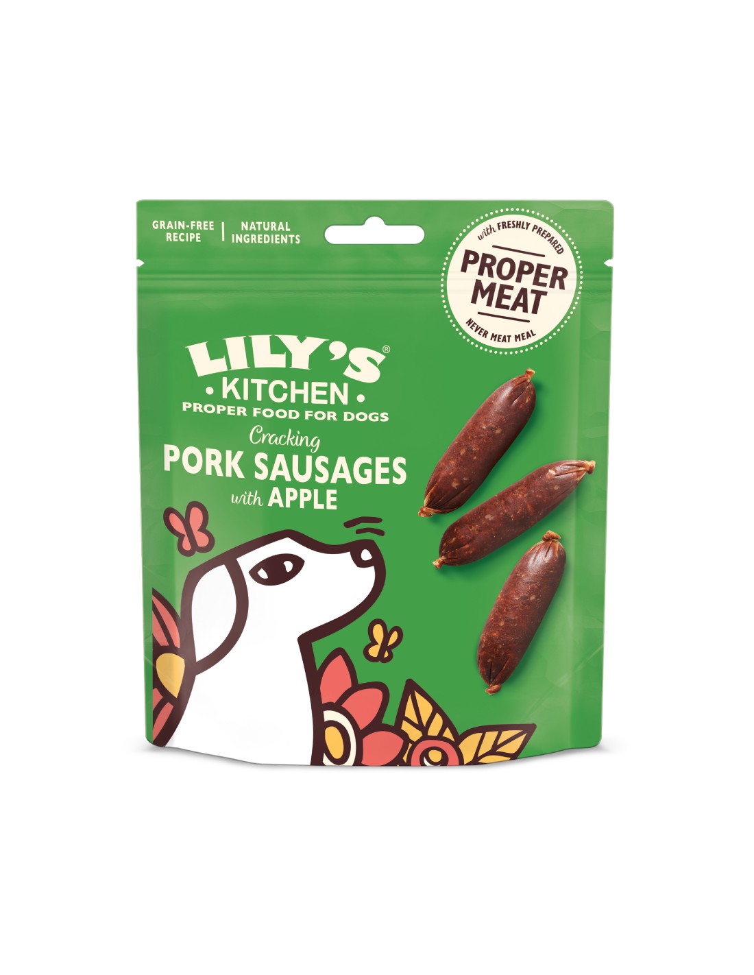 Lilys Cracking Pork - Apple Sausages para perros son unas deliciosas salchichas de cerdo y manzana, el premio perfecto para tu perro.