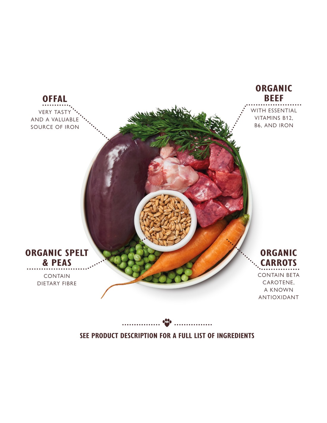 Ideal para perros de todas las razas y tamaños, esta cena orgánica mantendrá a tu perro feliz y saludable.