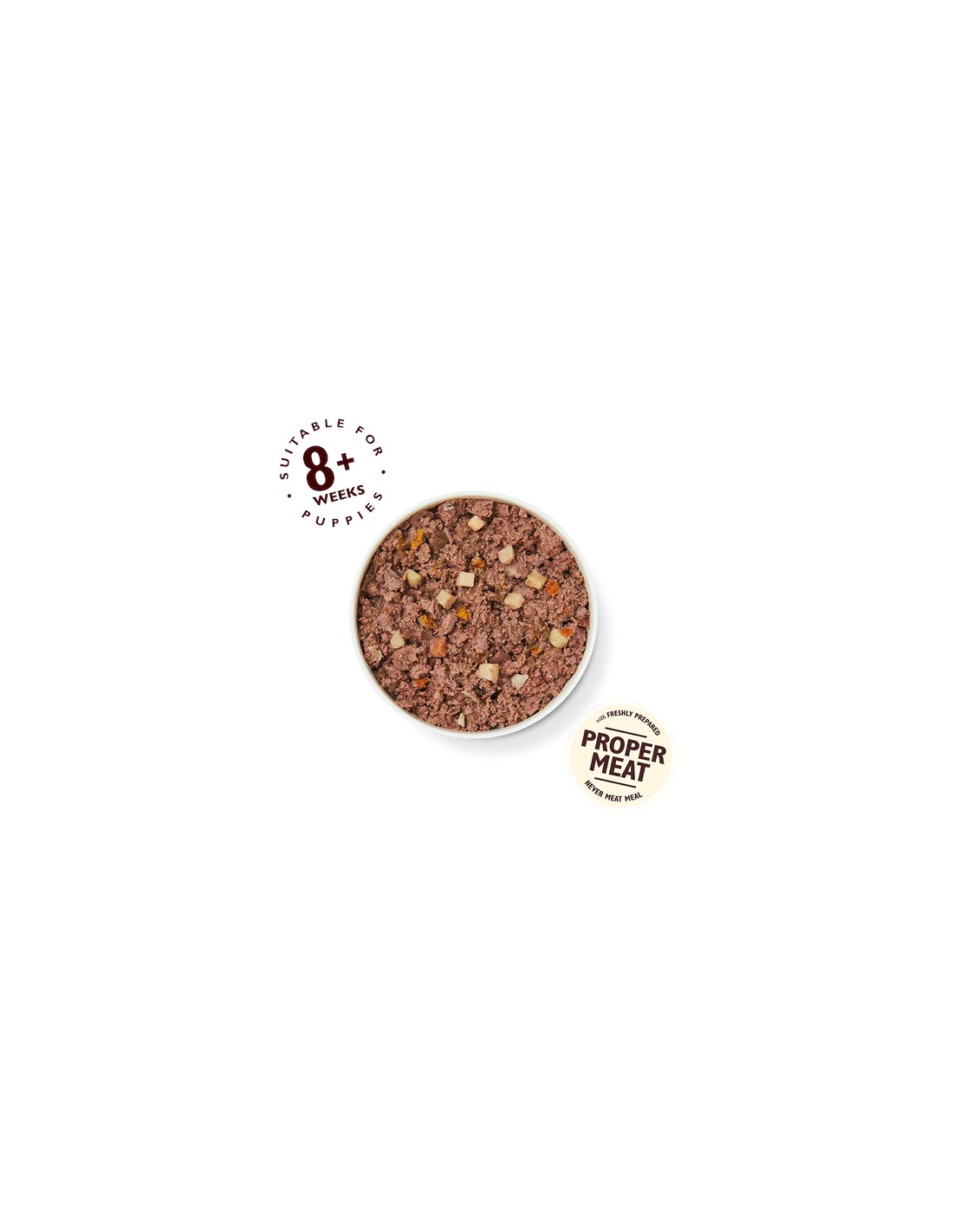 Libre de granos y aditivos artificiales, es ideal para cachorros con sensibilidades alimentarias.