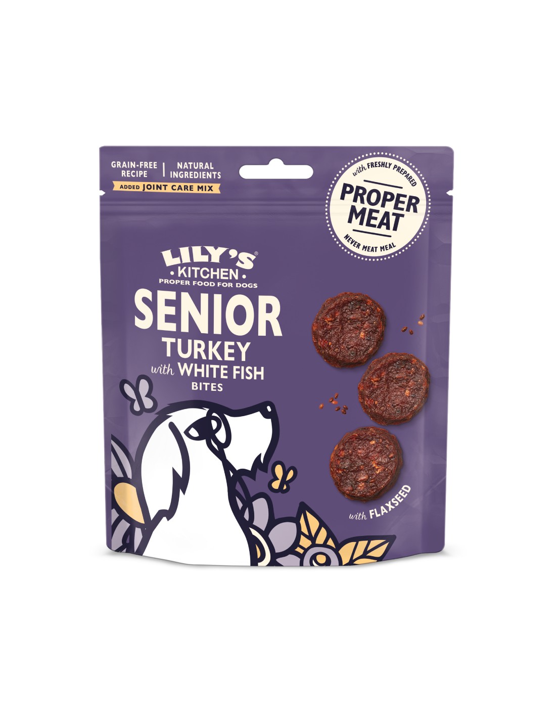 El LILYS TURKEY - WHITE FISH BITES SENIOR PARA PERROS es una opción ideal para consentir a tu perro mayor con un snack delicioso y nutritivo.