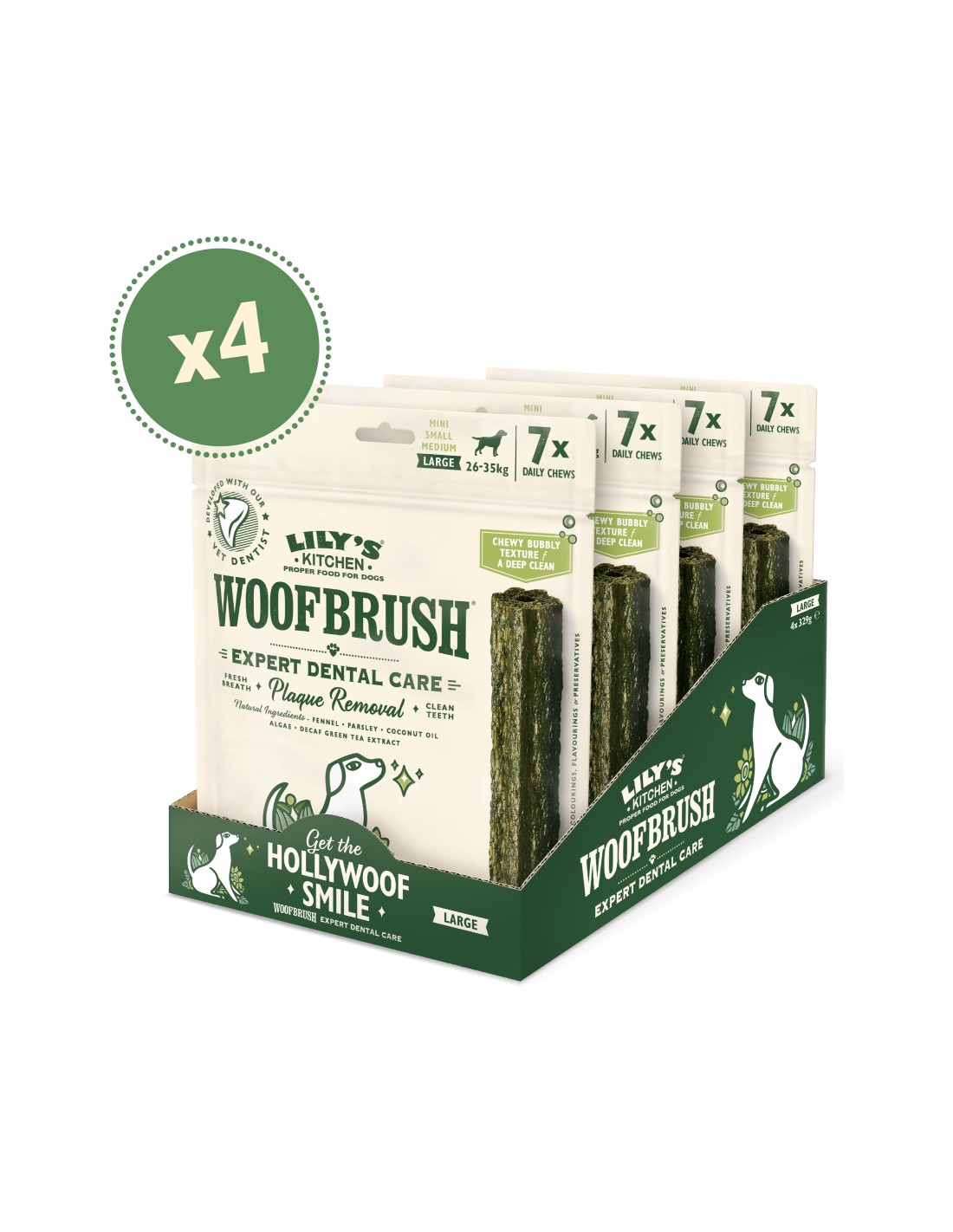 LILY´S WOOFBRUSH DENTAL CHEW LARGE PARA PERROS DE 26 A 35 KG (4 X 7 UNIDADES) LILY`S