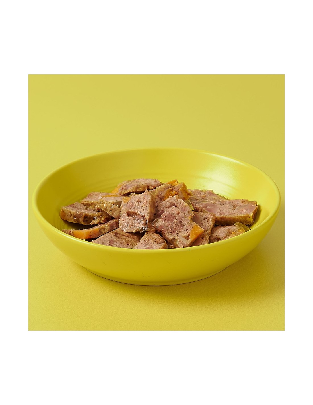 Con un contenido de 100 gramos, este paté es ideal para perros con paladares exigentes y puede servirse como comida principal o como complemento a su dieta diaria.