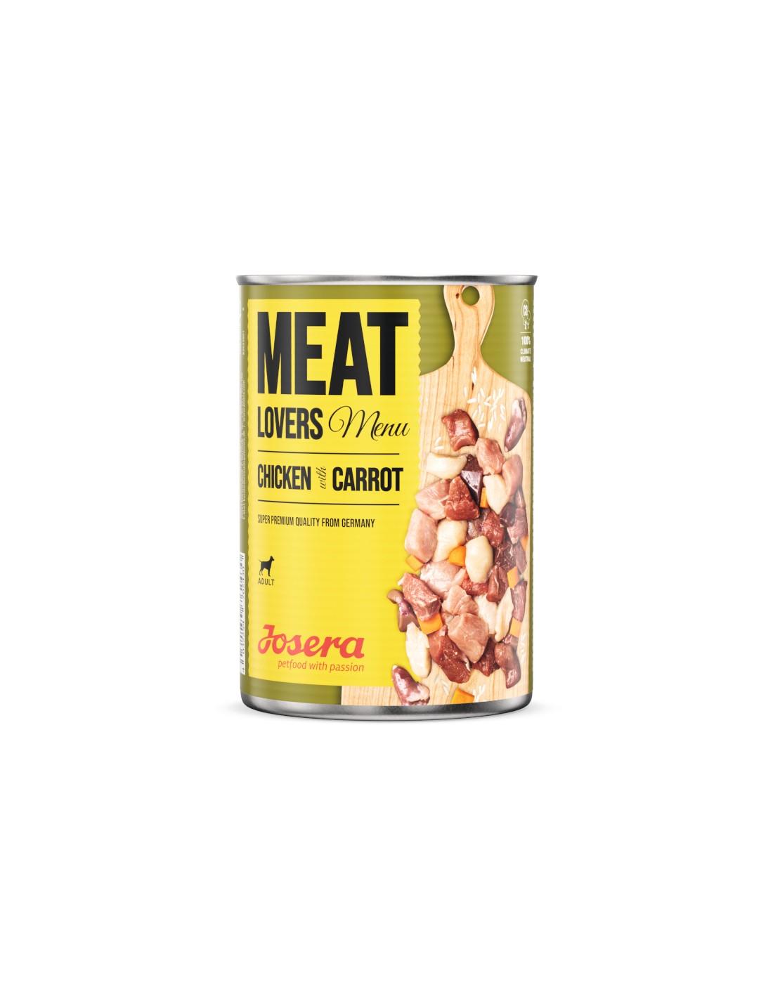 El alimento húmedo para perros Josera Menu Pollo con Zanahoria es una deliciosa opción para consentir a tu mascota.