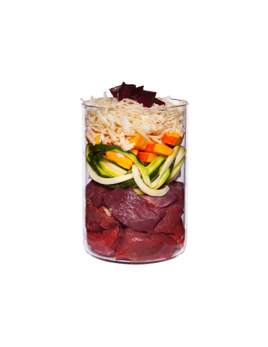Con 400 gramos de contenido, este plato se compone de corazón de buey, pulmón de buey, calabacín, calabaza y orégano, proporcionando una fuente rica en proteínas y nutrientes esenciales.