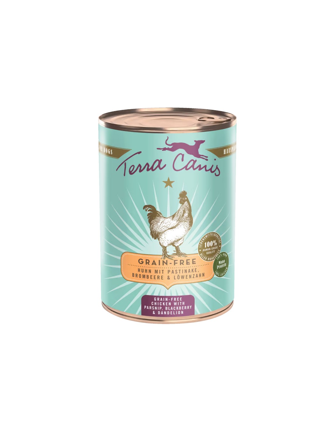 GRAIN FREE POLLO CON CHIRIVIA, MORA Y DIENTE DE LEÓN, SIN CEREALES TERRA CANIS - 400 GR