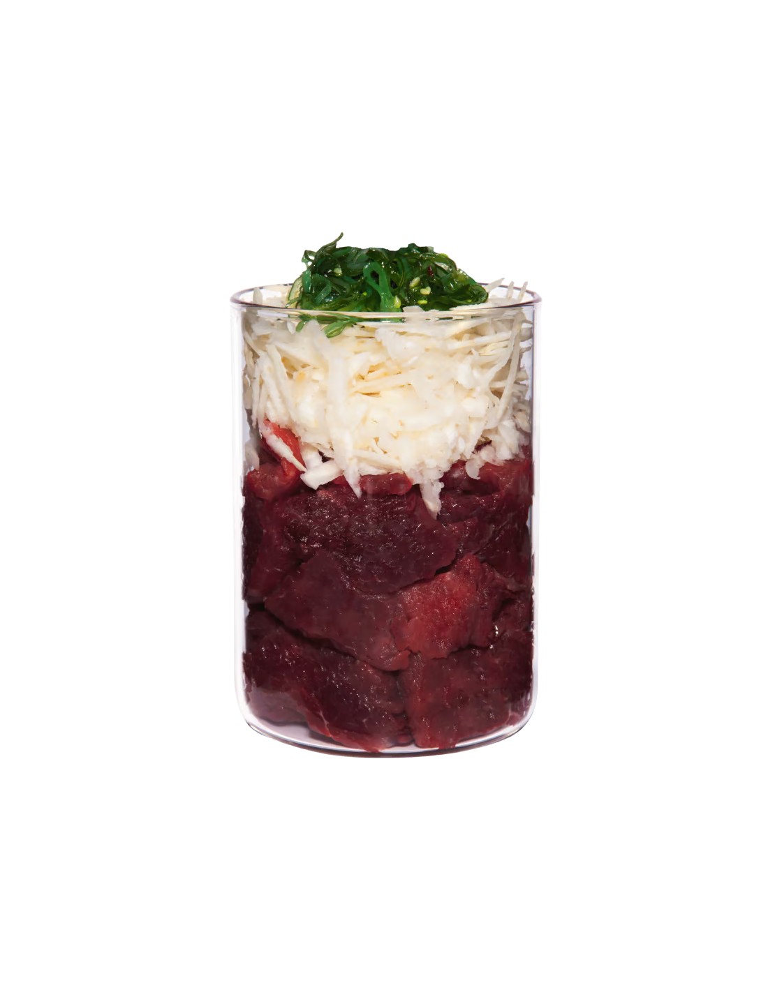 Con 400 gramos de contenido, esta receta combina carne de canguro y chirivía, proporcionando una fuente de proteínas de alta calidad y nutrientes esenciales.