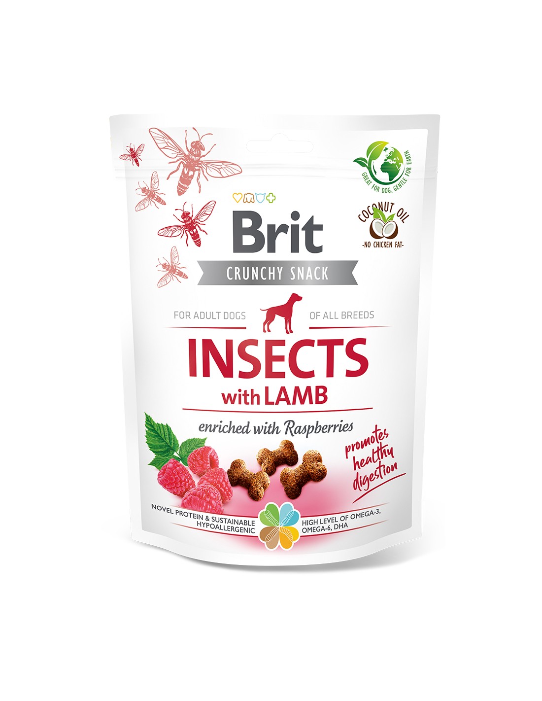 El Brit Care Dog Crunchy Cracker Insect Lamb Raspberries - 200 gr es un delicioso snack crujiente para perros, elaborado con ingredientes naturales y ricos en nutrientes.