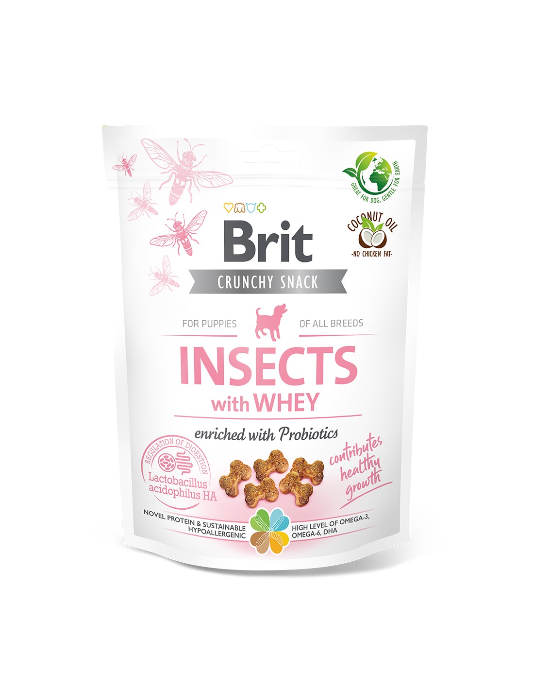 El Brit Care Dog Crunchy Cracker Insect Whey Probiotics - 200 gr es un snack innovador y saludable para perros, diseñado para apoyar la salud digestiva y el bienestar general de tu mascota.