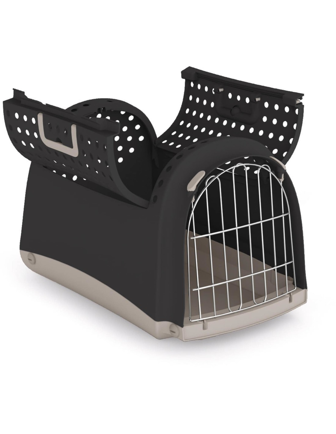 Con unas dimensiones de 52,5 x 32 x 34,5 cm, este transportín está fabricado con plástico resistente de alta calidad, asegurando durabilidad y estabilidad.