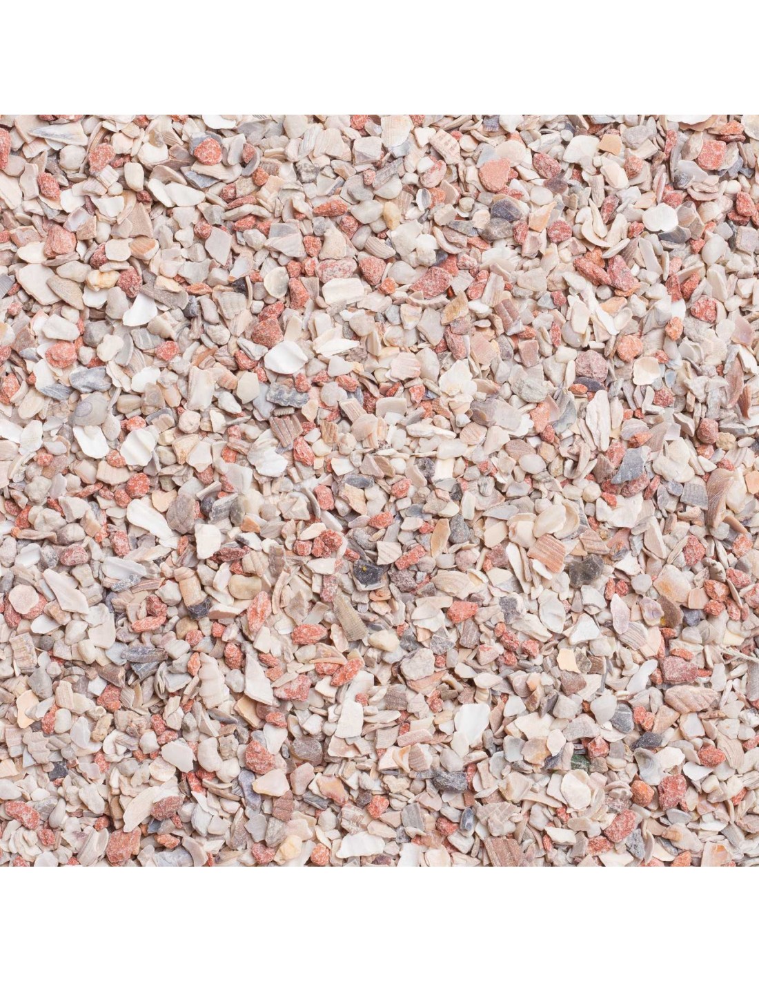 Compuesto exclusivamente por ingredientes naturales, como arena de concha, arena de concha de ostra, arena digestiva y piedra roja, está enriquecido con semillas de anís que atraen a las aves.