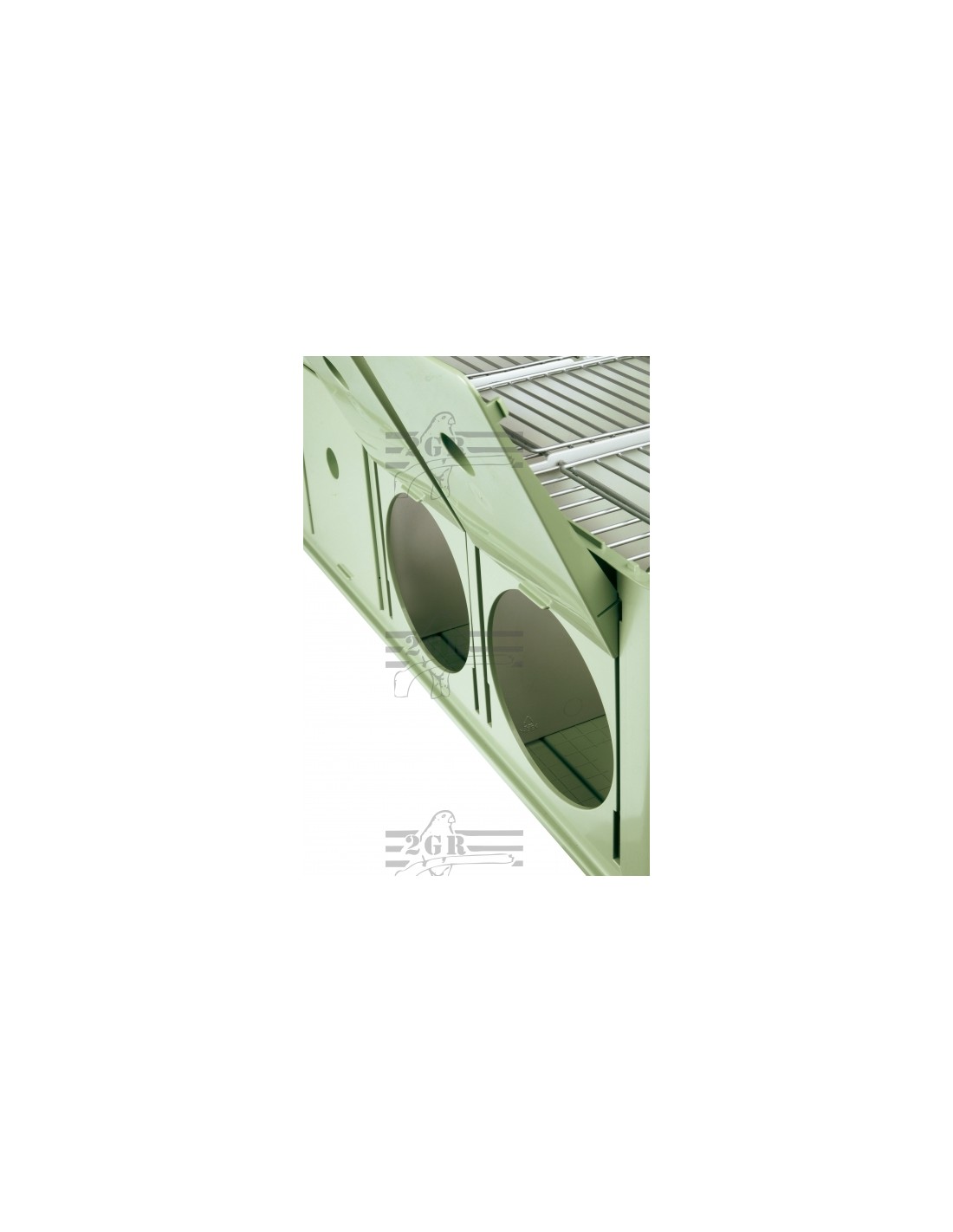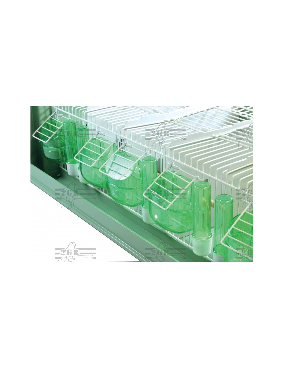Dispone de 5 cajones independientes con los correspondientes bebederos (exterior) y comederos (interior).