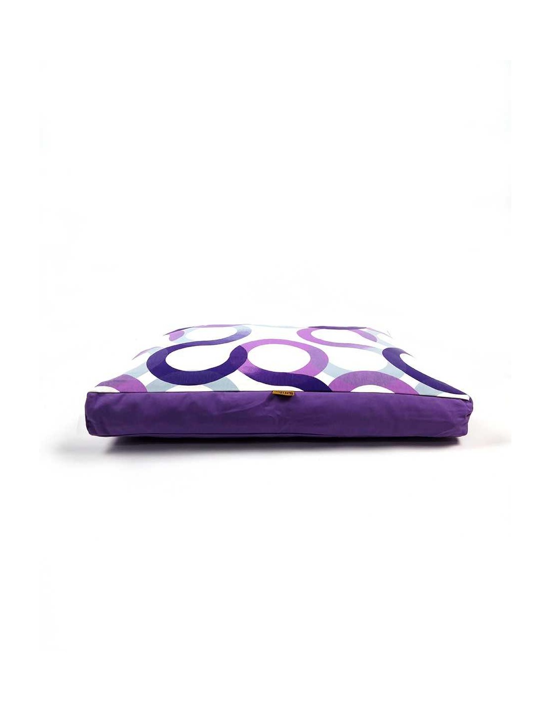 Colchón ThePetLover para perros y gatos, con elegante estampado en forma de aros de colores lilas y rosas.