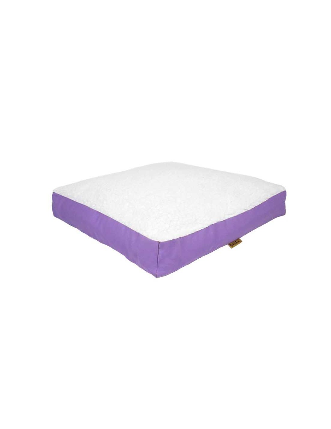 Precioso cojín cuadrado con borreguito blanco en la parte superior laterales en color lila