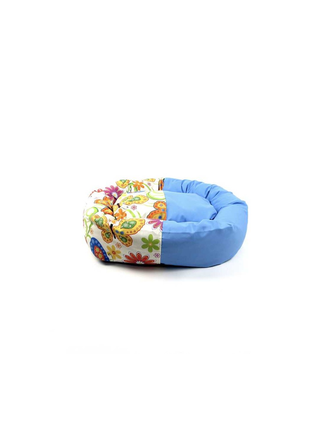 Cuna redonda ThePetLover para perros y gatos, con un original estampado de mariposas multicolor.