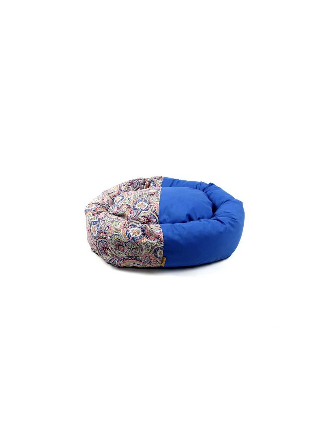 Cuna redonda ThePetLover para perros y gatos, con un original estampado mandala en tonos azules.