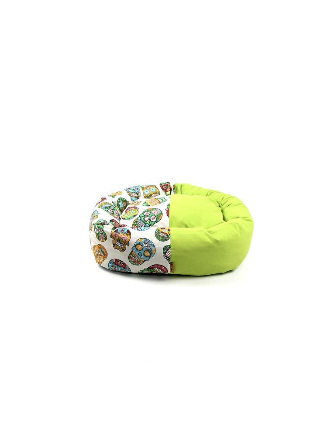 Cuna redonda ThePetLover para perros y gatos, con un impresionante estampado de calaveras mejicanas, un Cuna que seguro que te encantará y hará las delicias del descanso de tu mascota..
