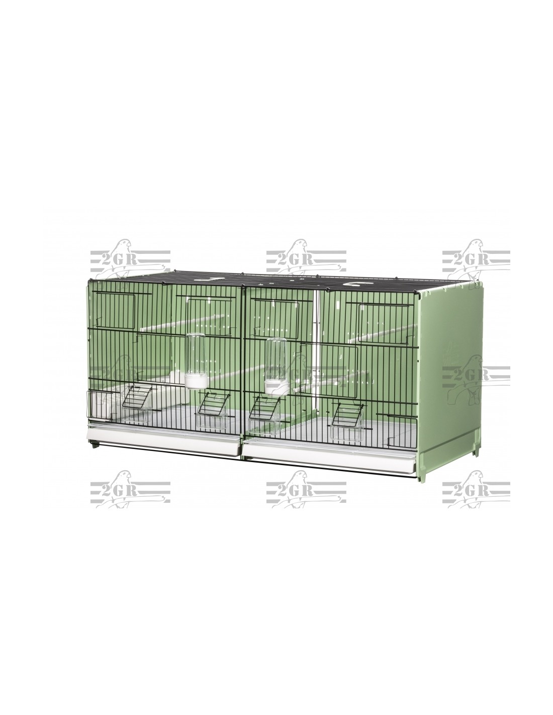 Jaula de cría desmontable y modulable 2G-R modelo Portofino, compuesta de 2 departamentos de 45 cm cada uno, con comedero interior y 4 comederos exteriores.