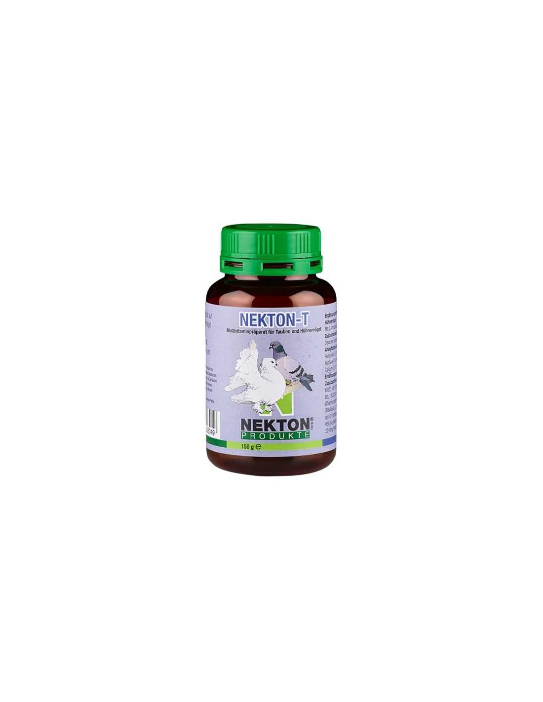NEKTON-T contiene todas las sustancias consideradas necesarias para la salud de las palomas, con 13 vitaminas, 6 oligoelementos, calcio, así como 2 aminoácidos. NEKTON-T proporciona a su paloma suficiente fuerza y energía. Utilice NEKTON-T en la dieta de sus palomas mensajeras una vez hayan vuelto de un vuelo agotador, se recuperarán en un corto tiempo. NEKTON-T ha sido especialmente probado en situaciones de enfermedad. Un pájaro necesita un aporte extraordinario de vitaminas durante los tratamientos con antibióticos, sulfamidas, etc. y así vencer los efectos negativos de estos componentes químicos sobre la flora intestinal. NEKTON-T es un polvo soluble en agua fría y por tanto ideal para suplementar la dieta de los pájaros. Ingredientes Vitaminas : vitamina A, vitamina D3, vitamina E, vitamina B1, vitamina B2, d-pantotenato de calcio, amida del ácido nicotínico, vitamina B6, ácido fólico, vitamina B12, vitamina C, vitamina K3, vitamina H Aminoácidos : L-lisina / L-metionina Minerales y oligoelementos : manganeso / zinc / cobre / hierro /cobalto / yodo / calcio / fósforo