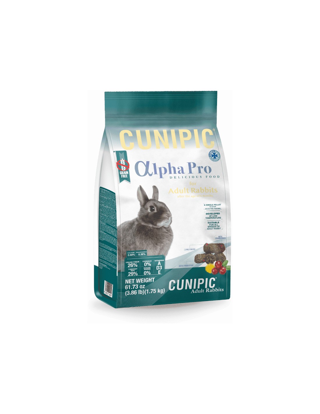 El Cunipic Alpha Pro Conejo Adulto es un pienso innovador diseñado para garantizar una nutrición completa y equilibrada a los conejos adultos.