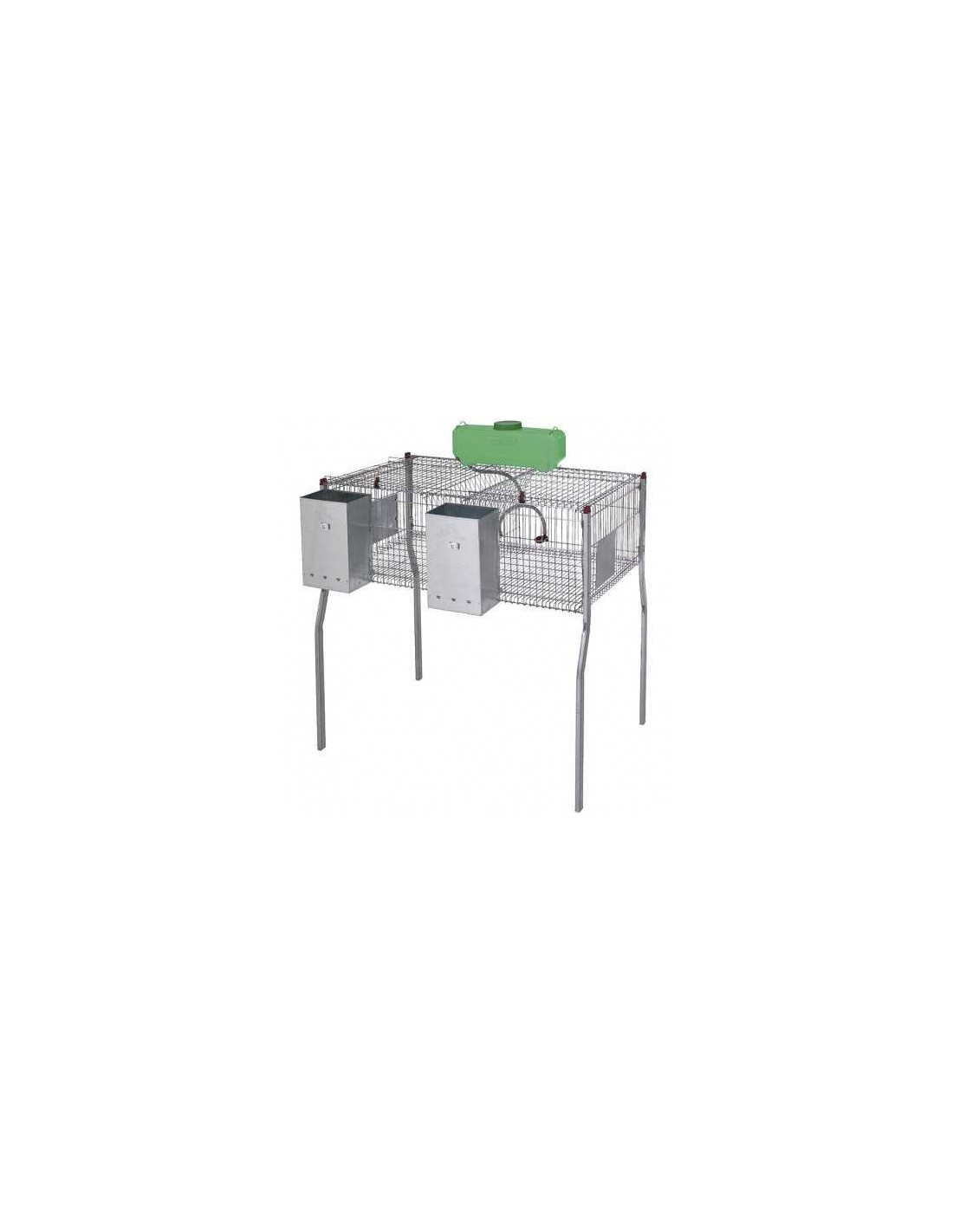 - Las tolvillas tienen una capacidad que ronda los 2 5 a 3 Kg de pienso y cada tolva tiene dos huecos para que puedan comer varios gazapos o conejos adultos de una misma tolva esto evita que haya un conejo dominante limitando un único hueco de la tolva. No obstante en periodos de engorde es posible sustituir el nido por otra tolvilla adicional multiplicando por dos el número de huecos de alimentación.