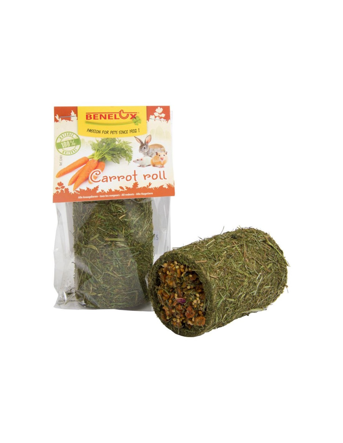 Descubre el Snack Heno CarroT Roll de Benelux, la golosina natural perfecta para roedores con un paladar exigente. Elaborado con heno de alta calidad y zanahoria, este delicioso rollo no solo es un manjar irresistibly crunchy, sino también una fuente de fibra esencial para una digestión saludable. Su formato enrulado y compacto favorece el instinto natural de mordisqueo, ayudando a desgastar los dientes de tu hámster, cobaya o conejo de forma segura y divertida. Es un producto 100% natural, sin azúcares añadidos ni colorantes artificiales, porque en Benelux creemos que la mejor nutrición debe ser simple y transparente. Ideal para usar como premio durante la socialización o para enriquecer la jaula, proporcionando horas de entretenimiento y bienestar. Confía en la experiencia de Benelux y ofrece a tu pequeña mascota un snack que cuida de su salud mientras deleita su sentido del gusto. Un gesto de cariño en cada bocado.