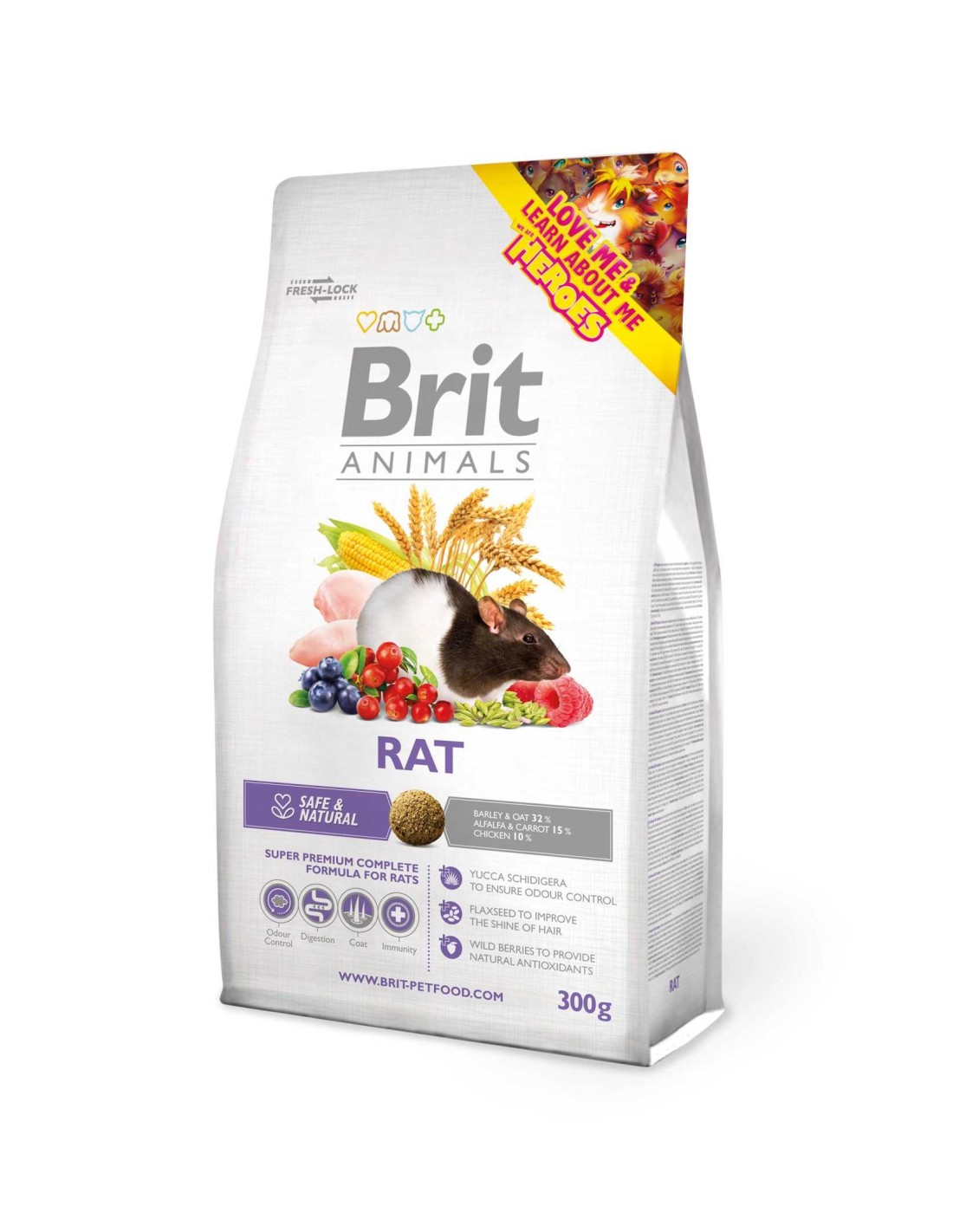 El BRIT ANIMALS RAT COMPLETE - 300 GR es un alimento superpremium diseñado especialmente para ratas domésticas.