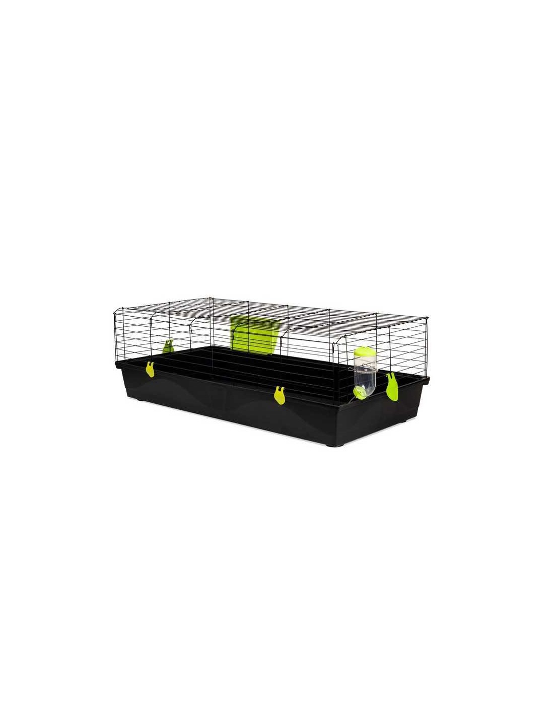 Con dimensiones de 120 x 59 x 40 cm, esta jaula ofrece un espacio amplio para que tu conejo pueda moverse y jugar con libertad.