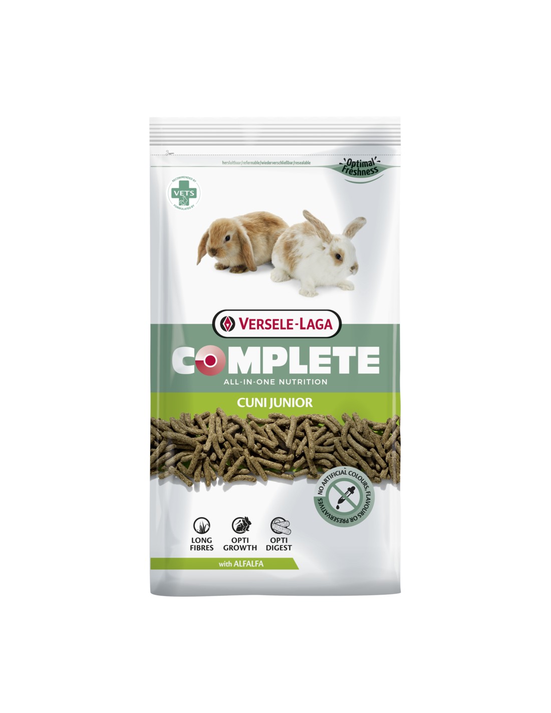 El Versele Laga Complete Cuni Junior es un pienso de alta calidad especialmente formulado para conejos jóvenes, desde su nacimiento hasta los 6-8 meses de edad.