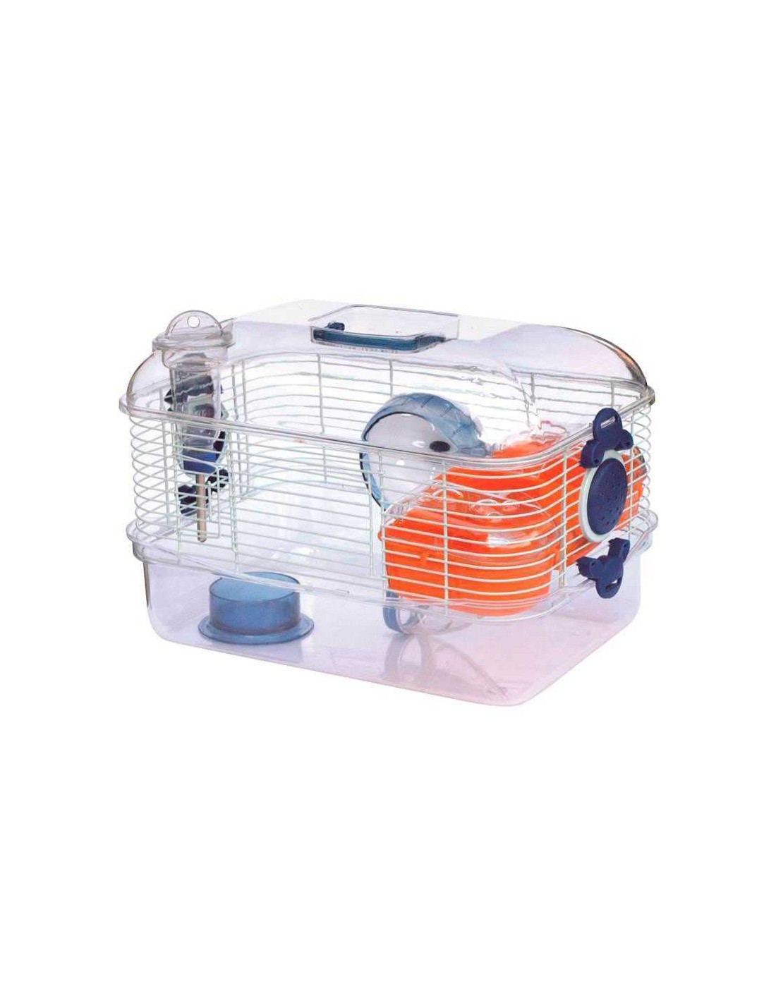 Incluye una rueda de ejercicio, un bebedero, un comedero y una casita para que tu hámster se sienta cómodo y entretenido.